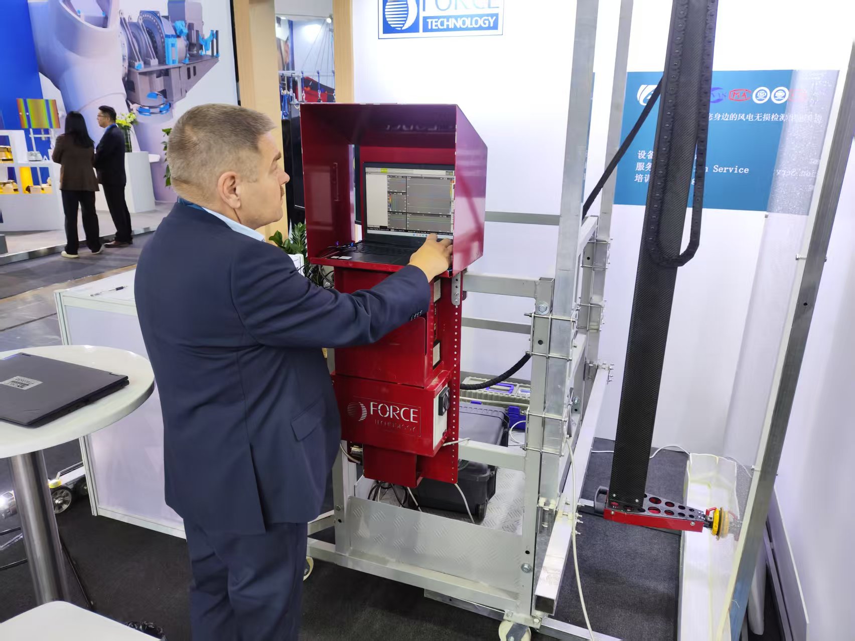 戈昱科技作为丹麦FORCE(丹麦福思力智科技有限公司)的大中国区独家代理商,和FORCE携手展示了我们的最新的在役叶片超声检测系统,全面展示了从硬件到软件的高尖技术与实力。其在风电探伤技术中领先的解决方案,为风电站的数智化升级交出了切实可行的完美答卷。